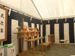 新しい営業所のお披露目はもちろんですが「無事に建物を建ててくれて神様ありがとう!この建物をずっと守ってくださいね!」と言う式もあるようです。