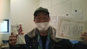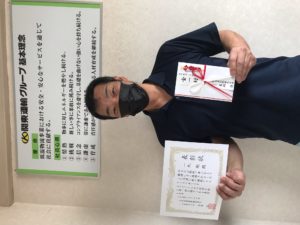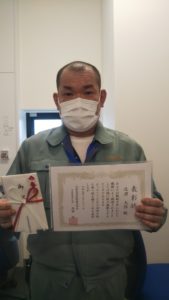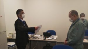 本社におきましては、久保田取締役より表彰状と金一封を手渡しで皆さんに贈呈致しました。