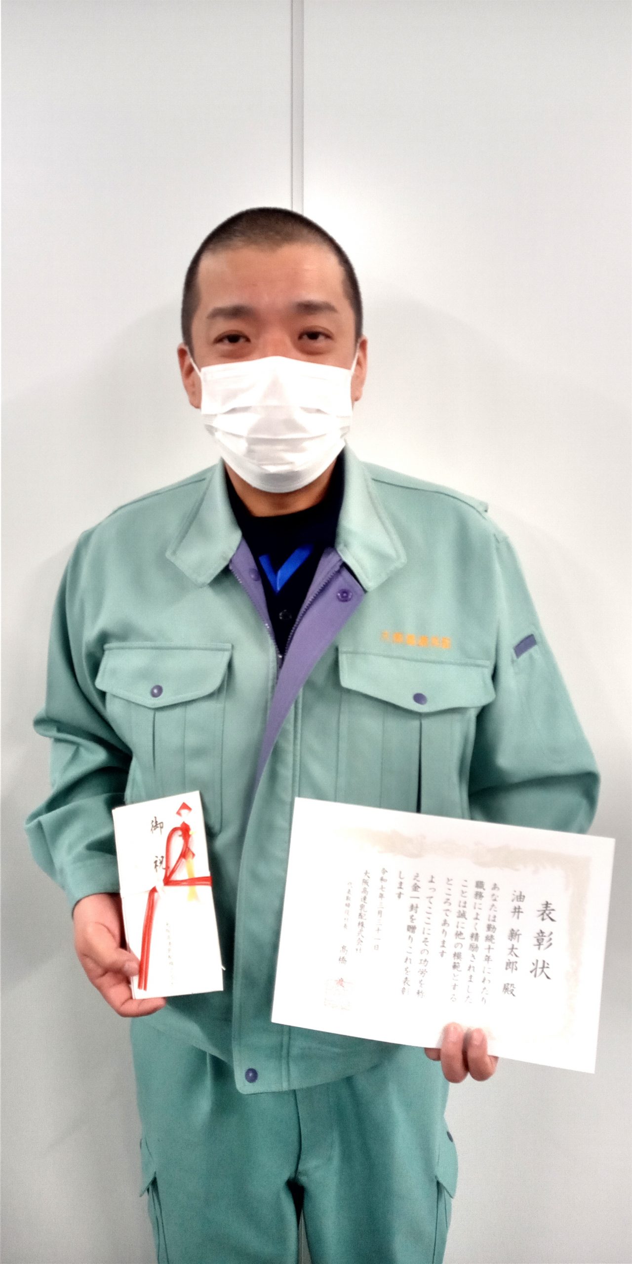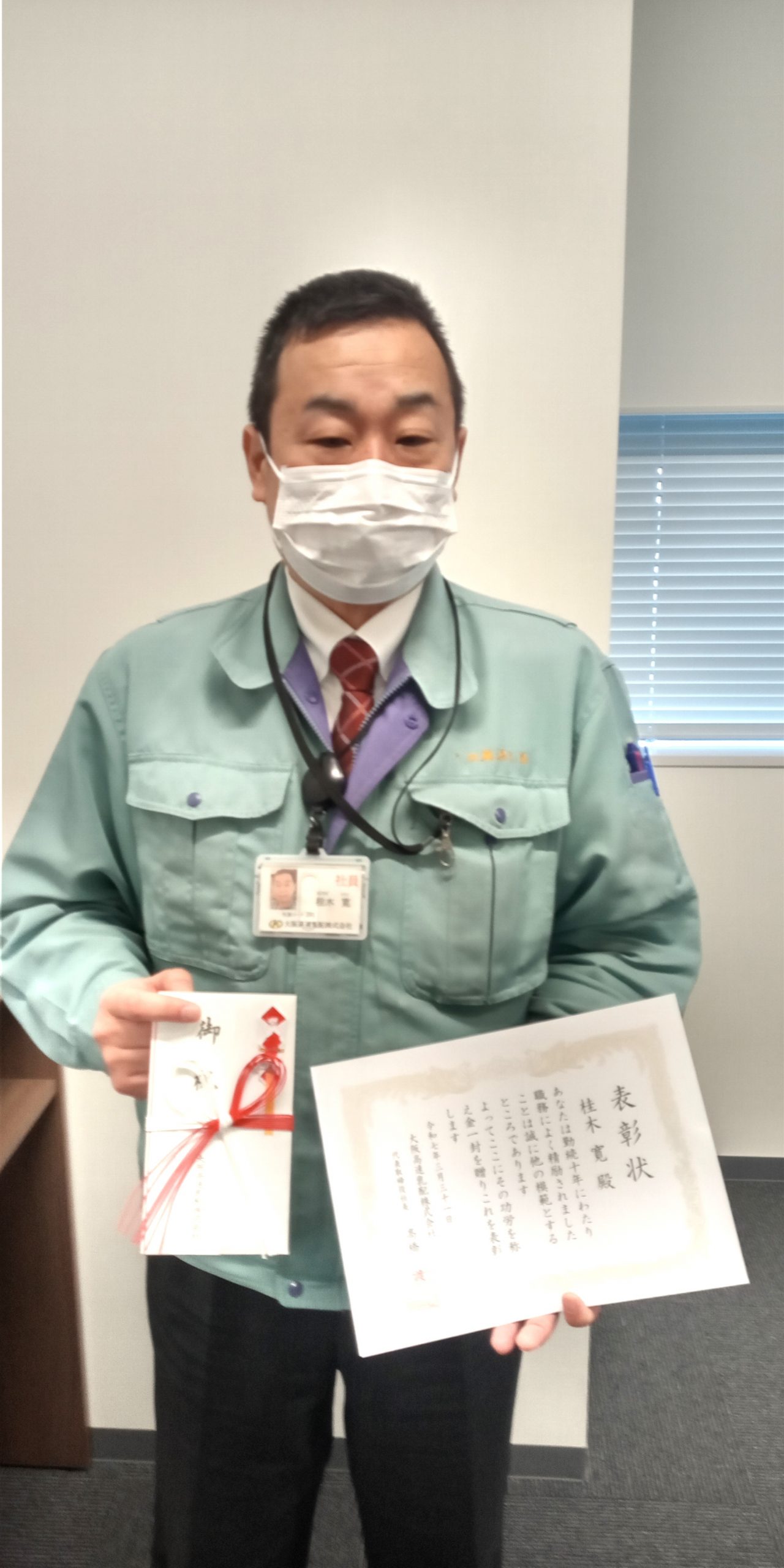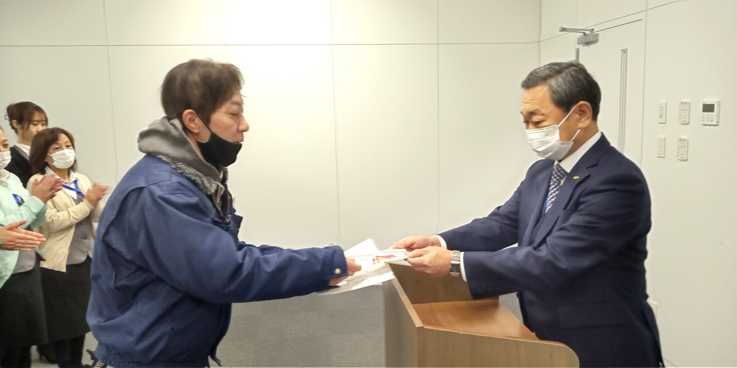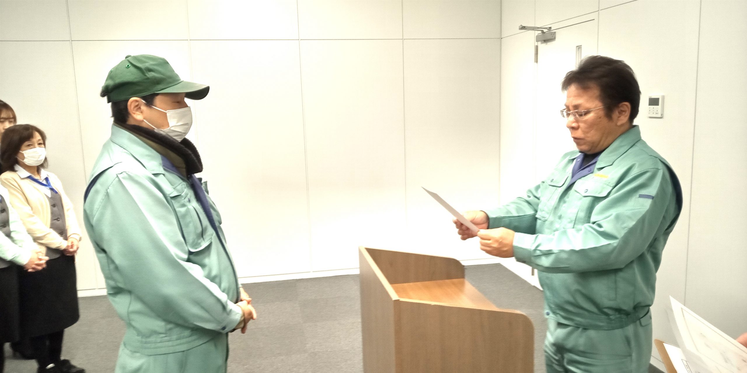 永年勤続表彰では長年の当社への貢献に感謝の意を表し、髙橋社長より表彰状と賞金が手渡されました。