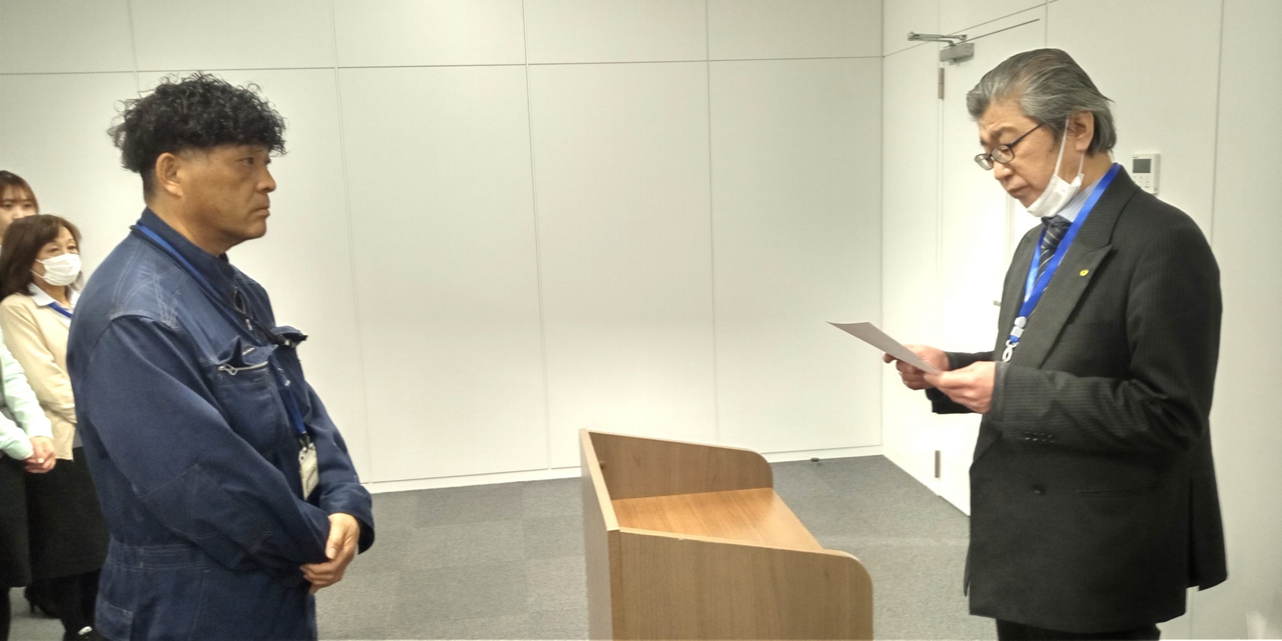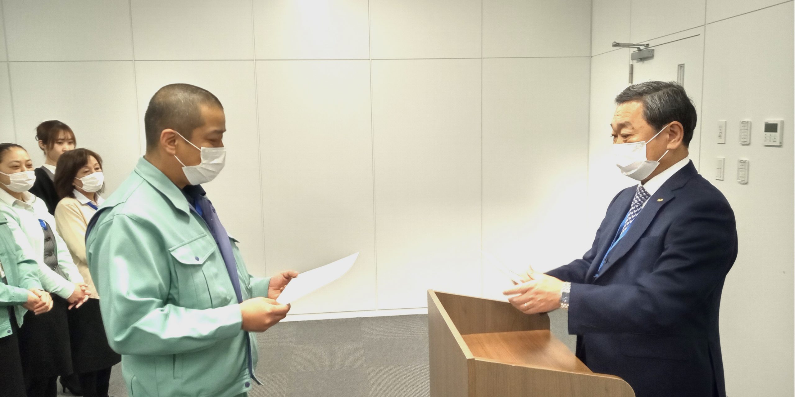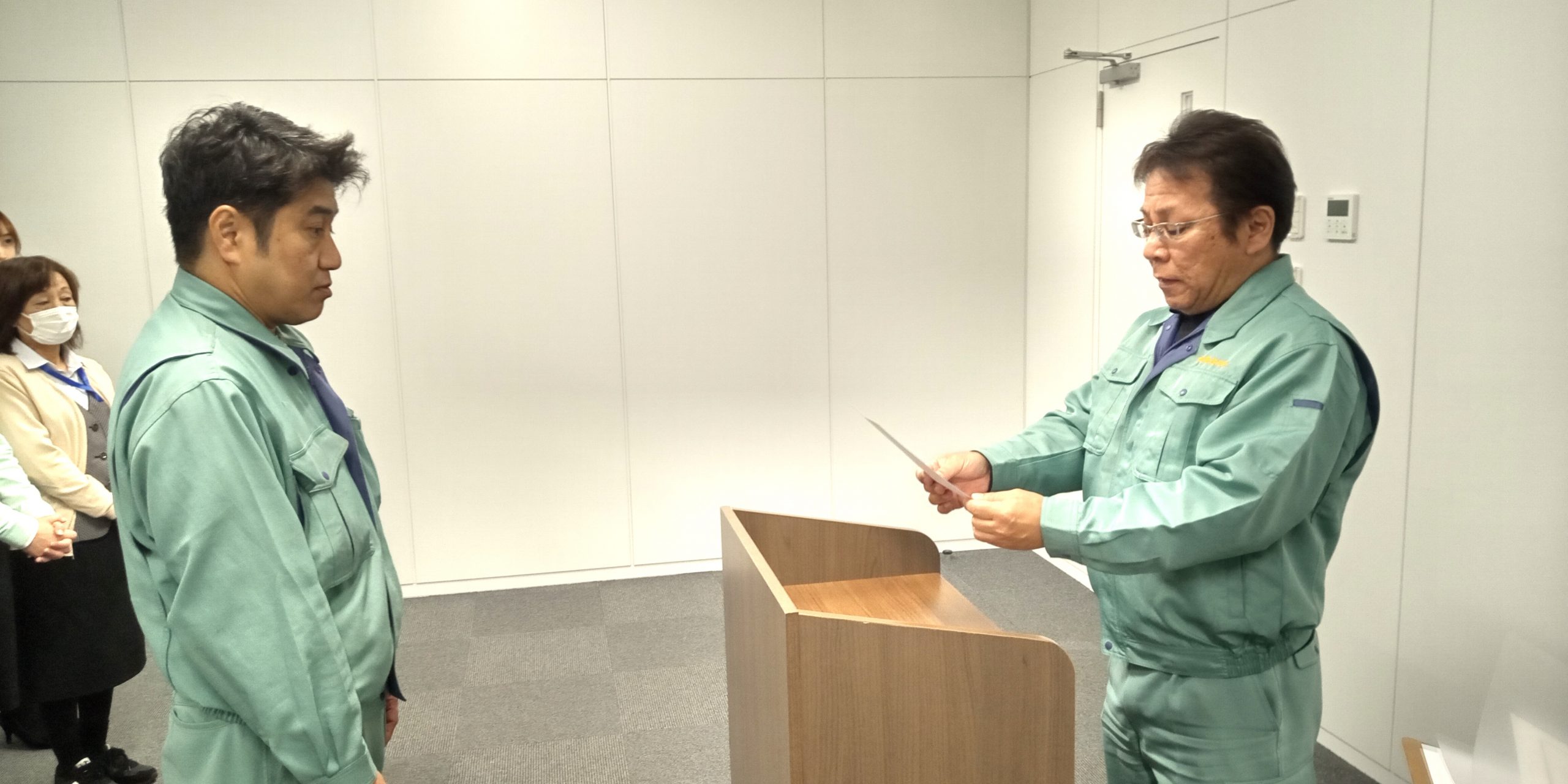 本日は当社の昇進者の辞令授与と永年勤続表彰が執り行われました。
