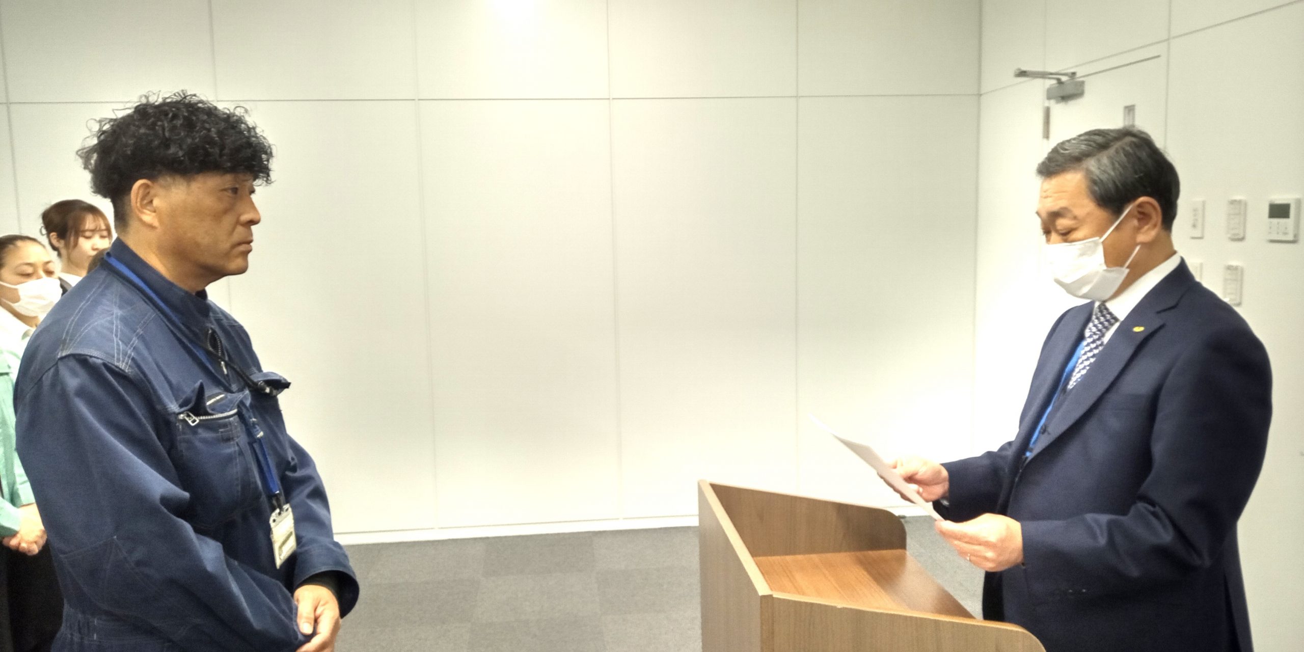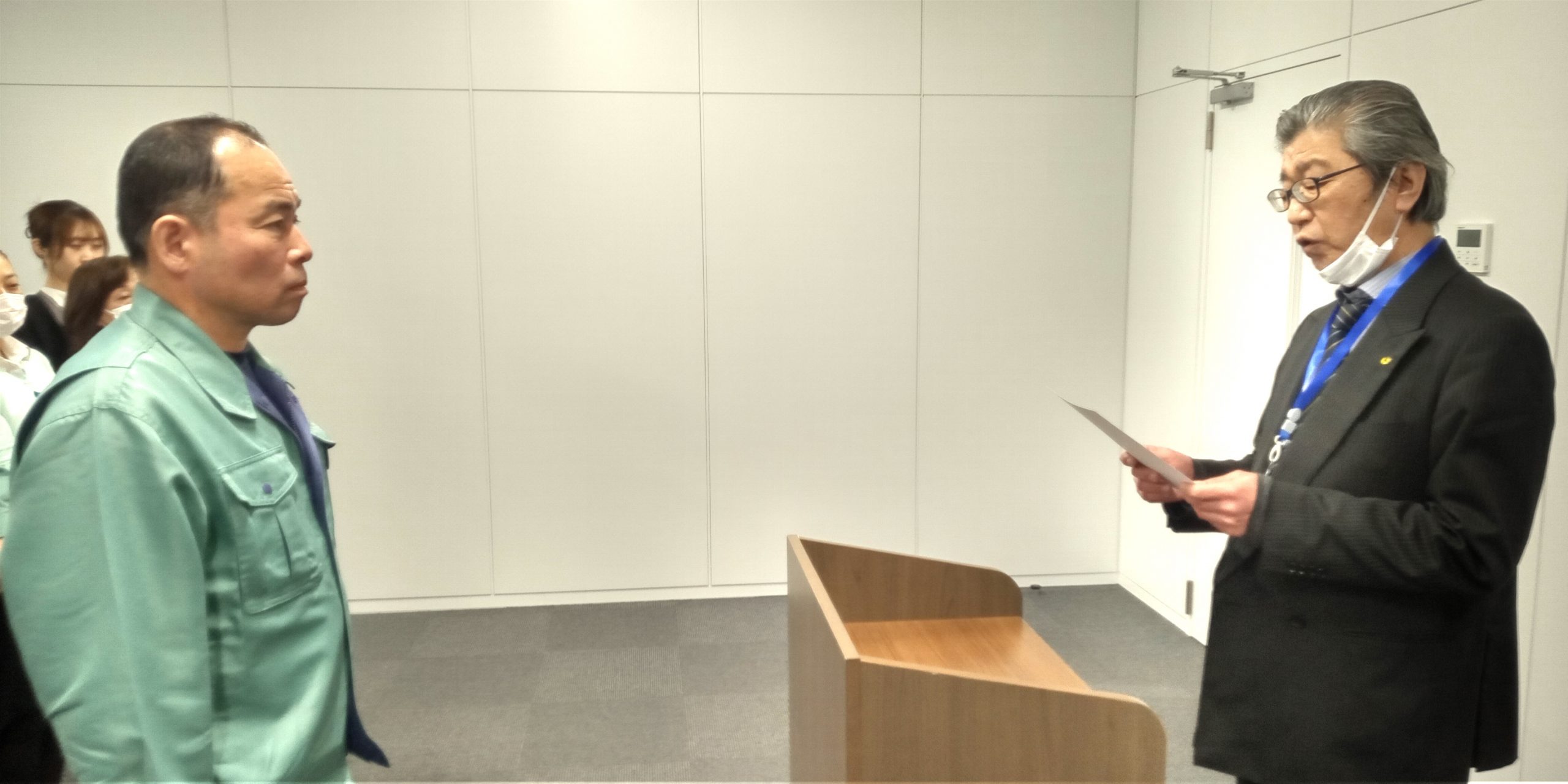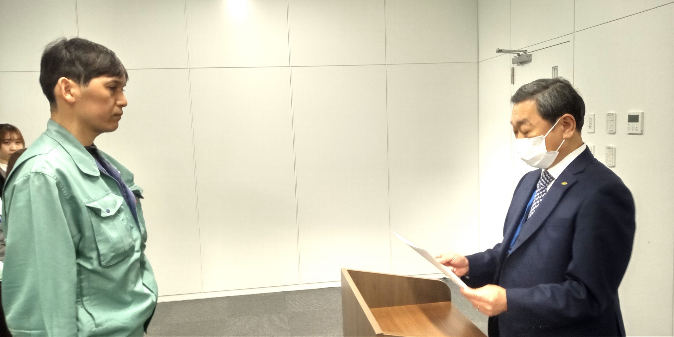 本日は当社の昇進者の辞令授与と永年勤続表彰が執り行われました。