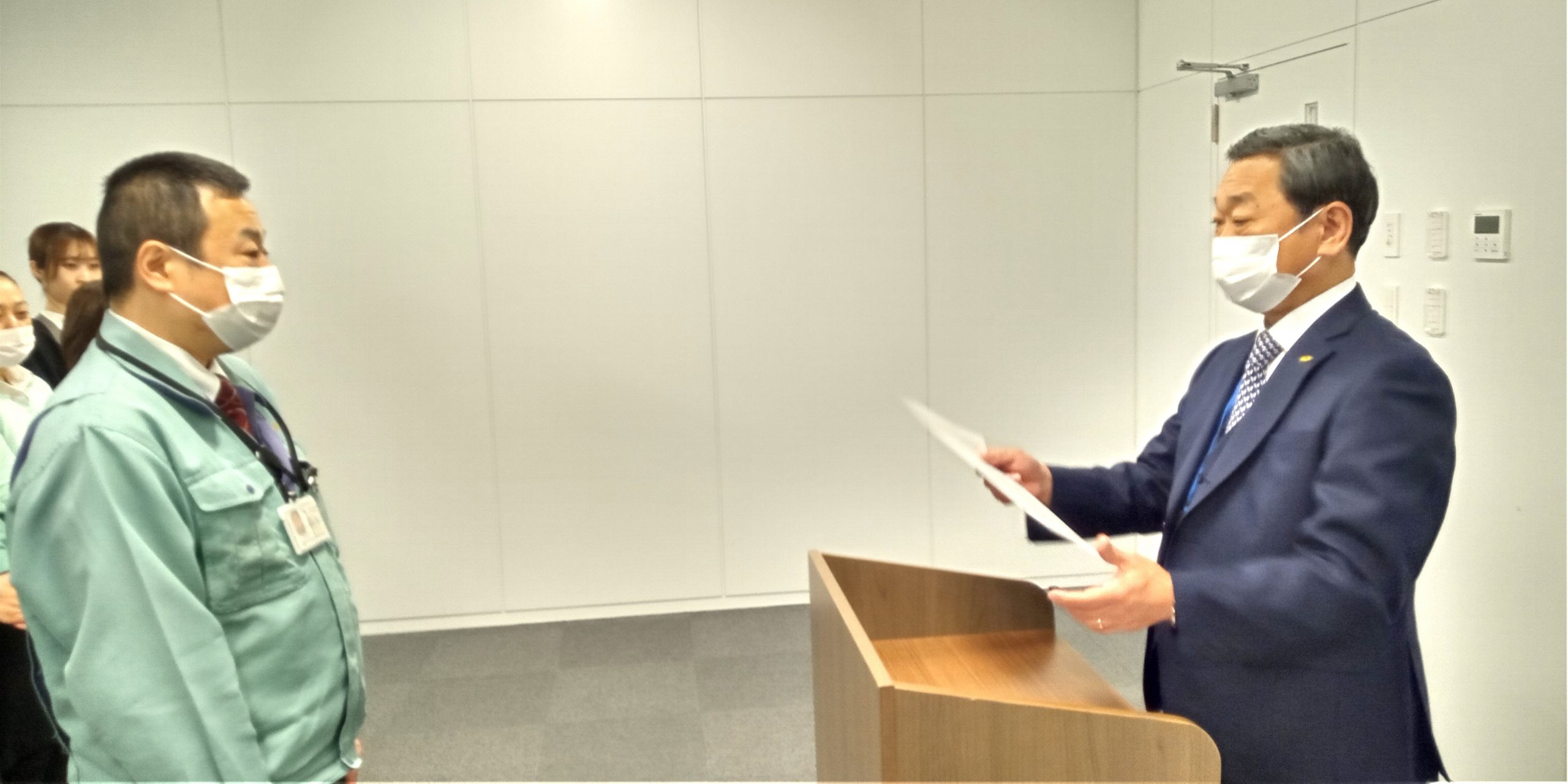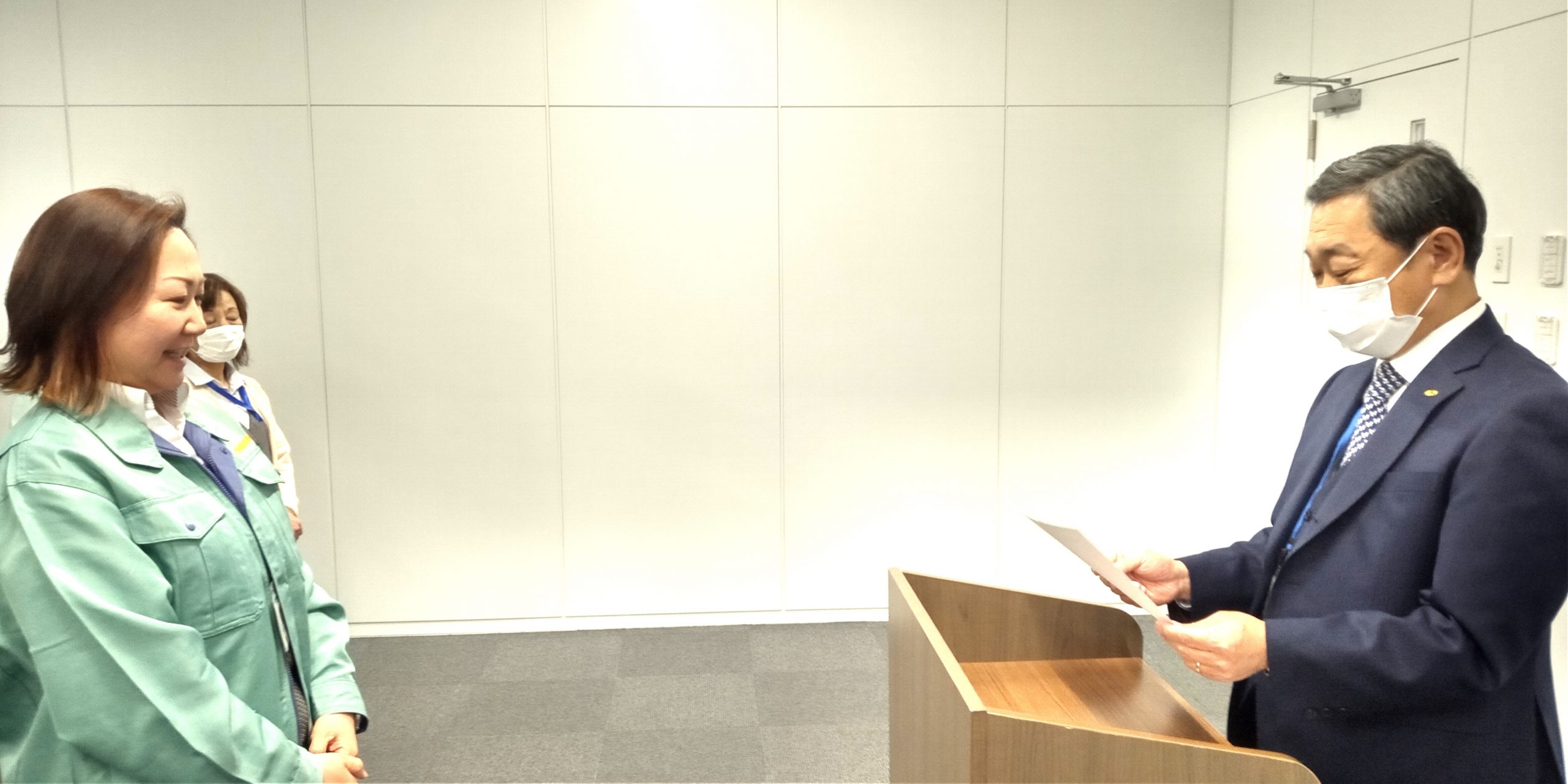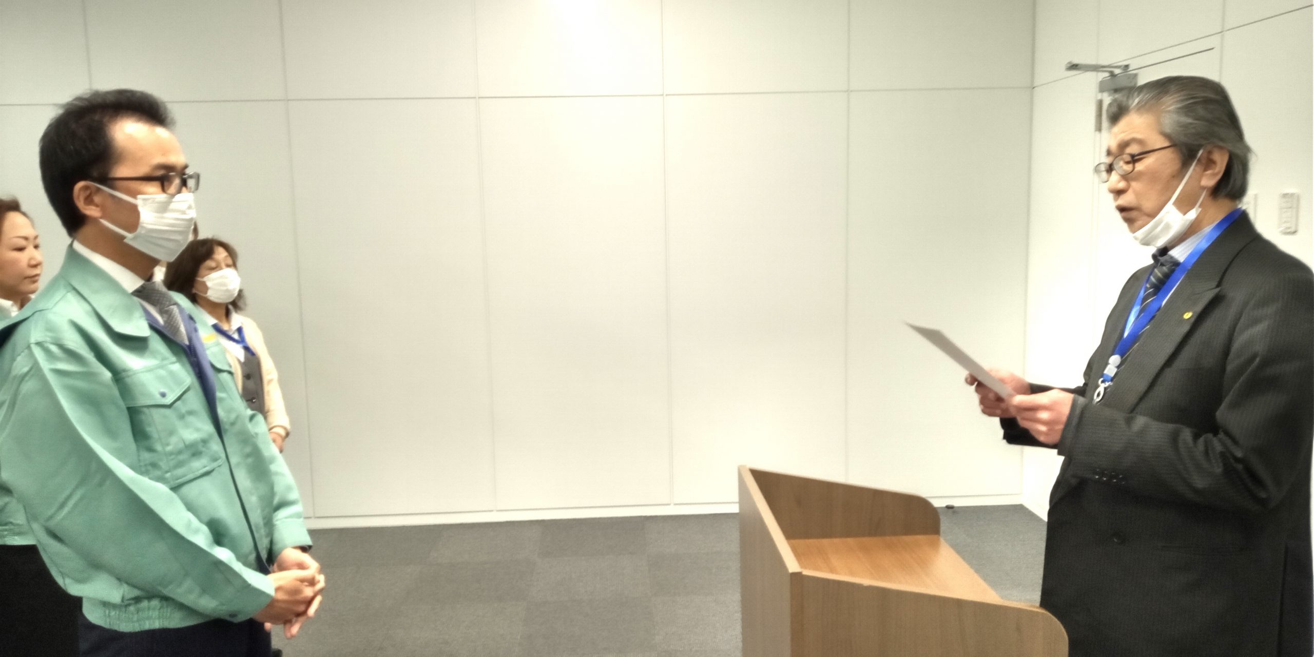 管理統括部での昇進者へは久保田執行役から辞令の授与が行われました。