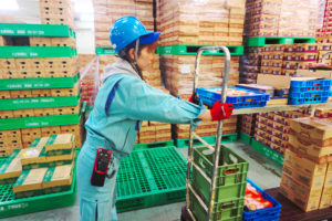 倉庫内での乳製品(牛乳やヨーグルト、プリン、チーズ等)の仕分けや入出庫作業が中心。
